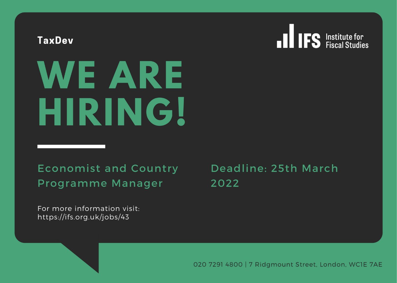 Institute For Fiscal Studies On Twitter Job Opportunity Have A Masters In Economics Interested In Tax Policy And Development Join The Taxdev Team As Economist And Country Programme Manager Details Here
